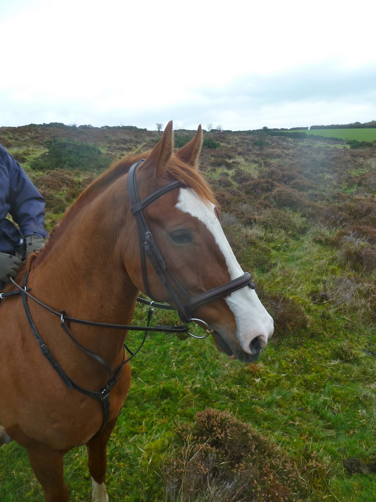 What a transformation he has achieved - here is a photo from just a few days ago of Zan on the sort of terrain that he now covers comfortably and happily - I don't have any photos of him going up this hill because he decided he would trot and was going too fast :-)